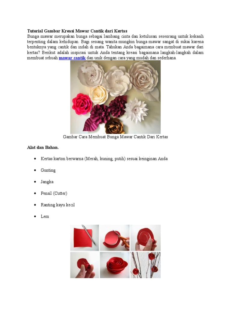 Tutorial Gambar Kreasi Mawar Cantik Dari Kertas