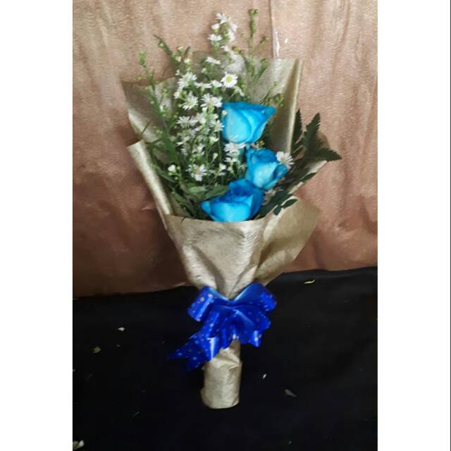 Jual Buket Bunga Mawar Biru Fresh Hadiah Ulang Tahun Handbouquet Di