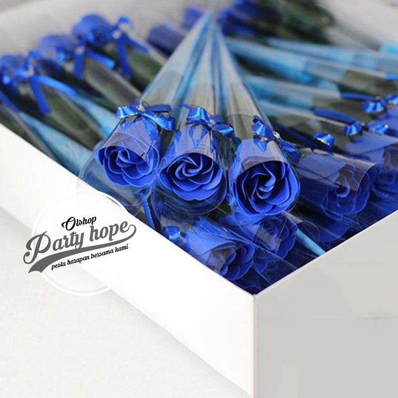 Souvenir Ultah Buket Bunga Mawar Biru Flower Soap Bunga Kado