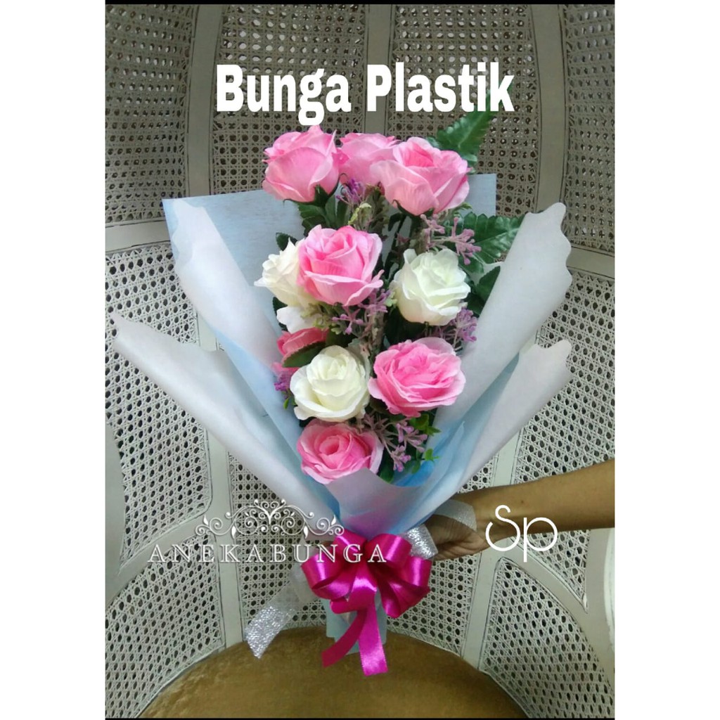 Jual New Buket Bunga Mawar Biru Putih Plastik Artificial Blue White