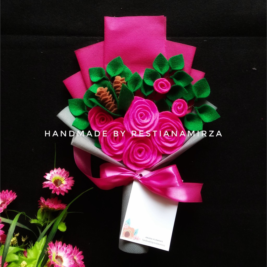 Buket Bunga Flanel Mawar Kado Unik Pernikahan Felt Flowers Handmade Craft Murah Ultah Wisuda
