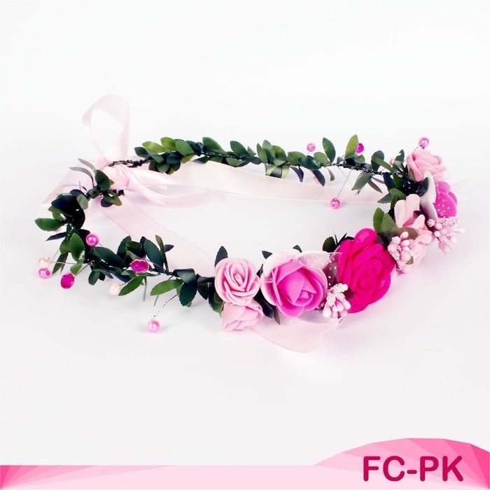 Flower Crown Pink Aksesoris Bando Mahkota Bunga Cantik Pesta Fc Pk