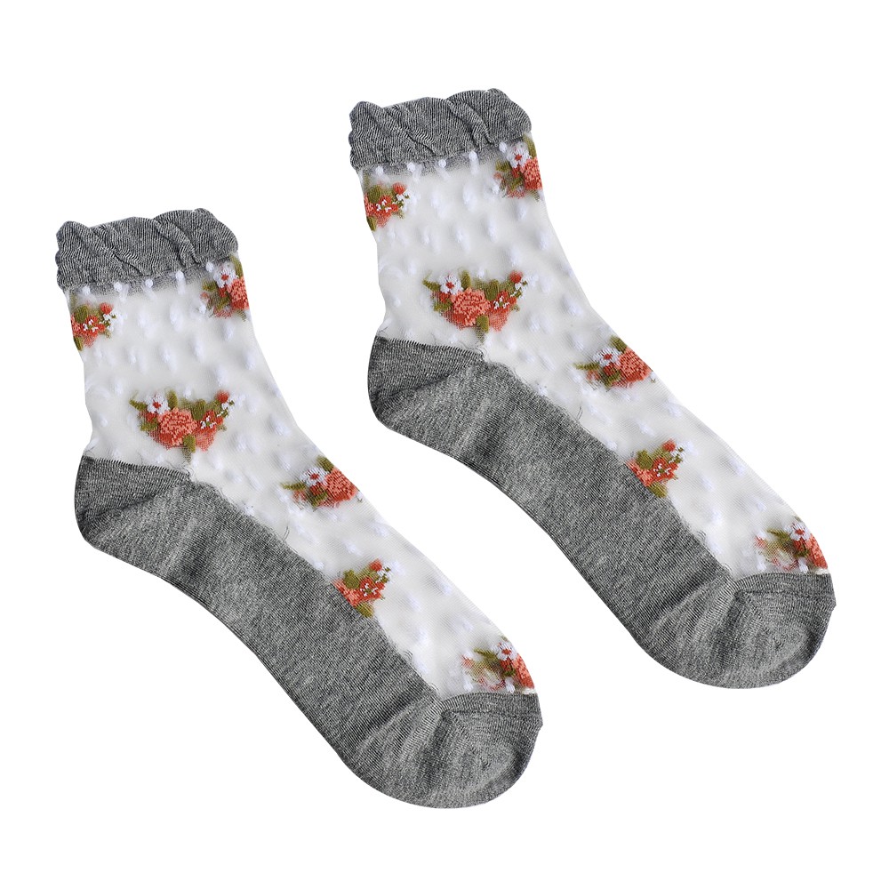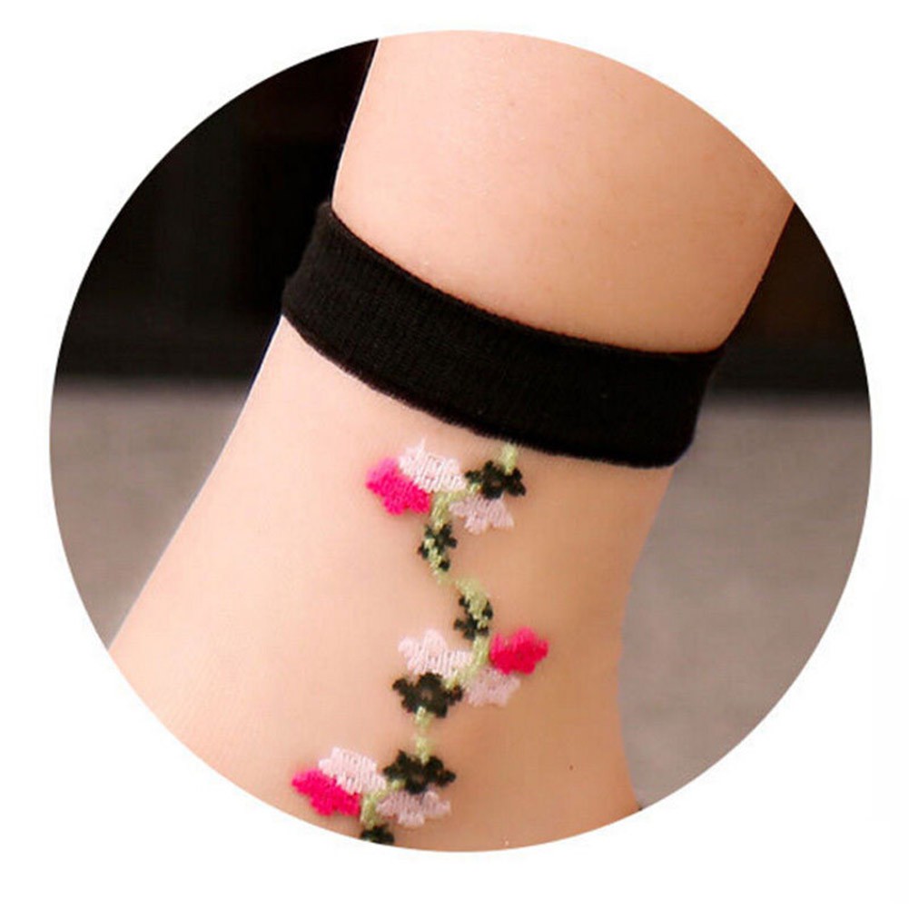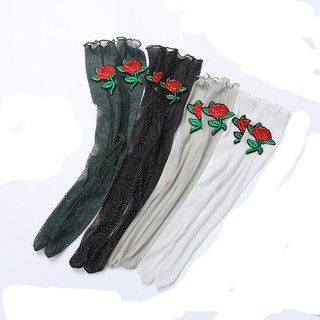 Wanita Gadis Bunga Mawar Bordir Mesh Socks Ultra Tipis Transparan