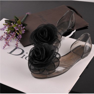 Penjualan Sepatu Open Toe Wanita Bahan Jelly Flat Heels Aksen Bunga