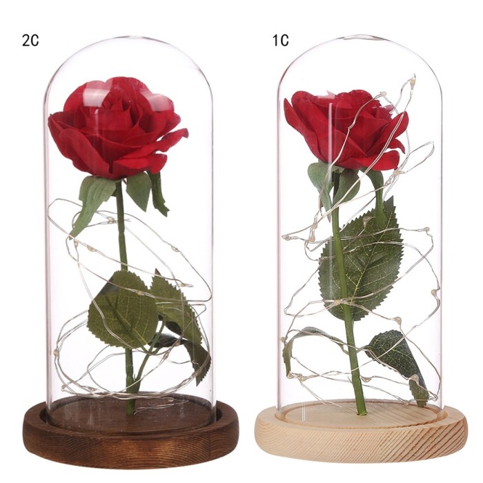 Jual New Ornamen Bunga Mawar Merah Dalam Tabung Kaca Dengan Lampu