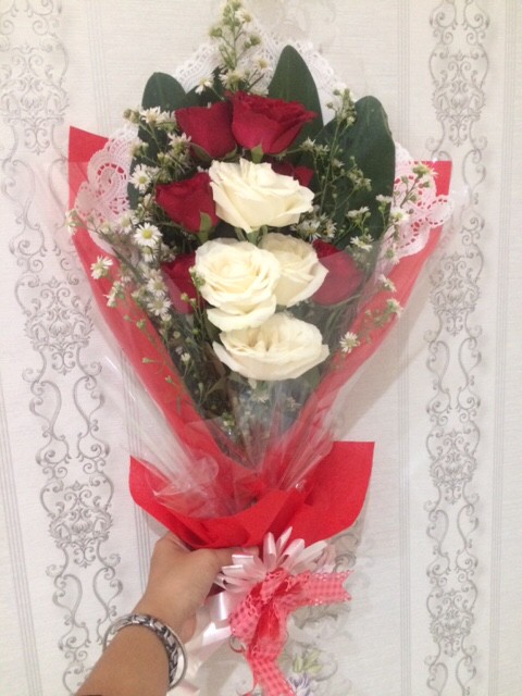 My Beloved One Hand Buket Romantis Bunga Mawar Pink Merah Putih
